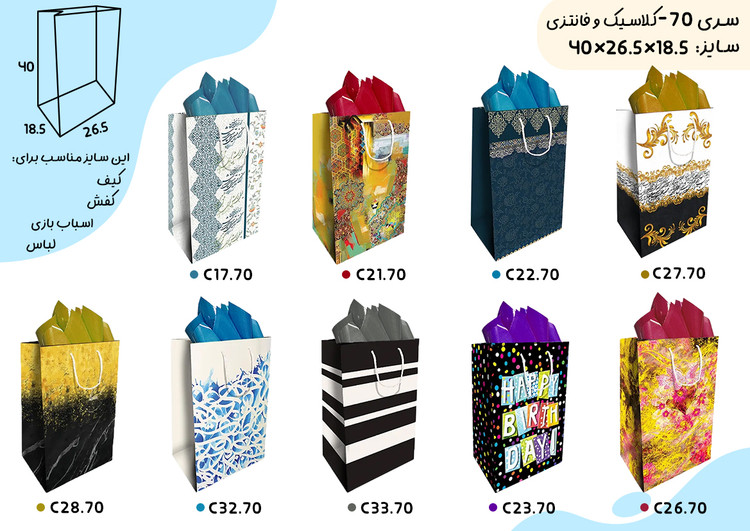 ساک هدیه فانتزی،کلاسیک و کودک در ابعاد (ارتفاع 40عرض26.5 عمق 18.5)