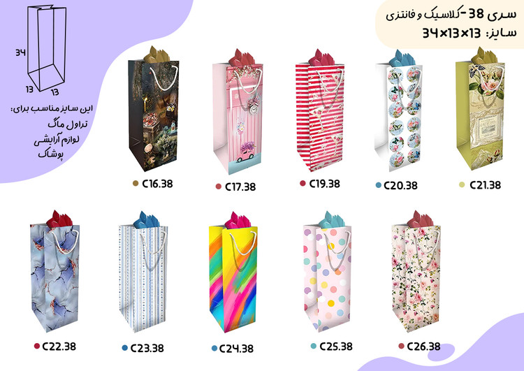 ساک هدیه فانتزی و کلاسیک در ابعاد (ارتفاع 34 عرض13 عمق 13)