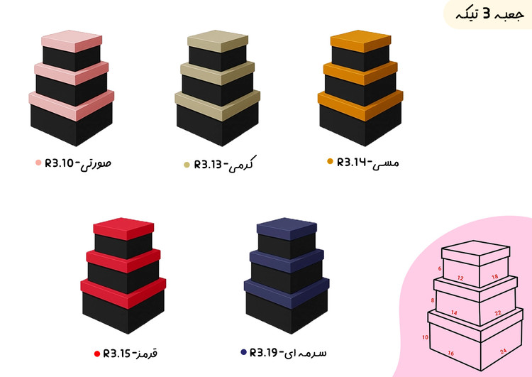جعبه کادویی 3 تیکه در سه سایز در رنگبندی متفاوت