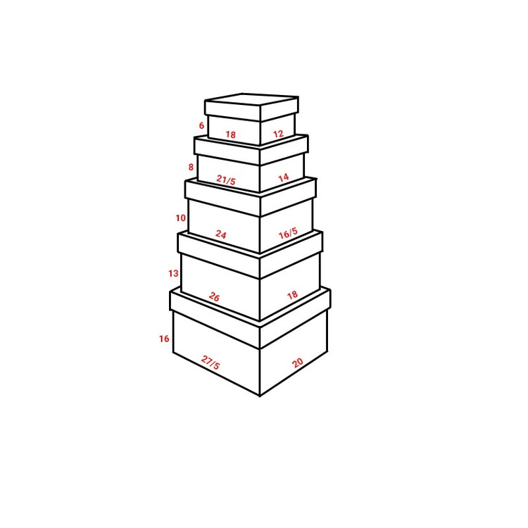 جعبه کادویی 5 تیکه در پنج سایز در رنگبندی متفاوت
